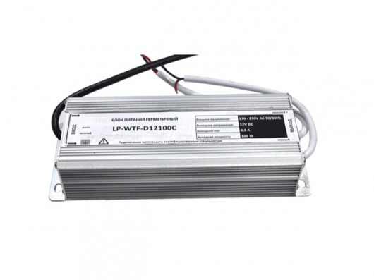 Герметичный блок питания WTF-D24-100C с мощностью 100 Вт поможет вам подключить светодиодную ленту с напряжением 24V к обычной электросети (220V). У данного блока питания для ленты есть металлический корпус, который защищает блок от внешних повреждений и влаги. Поэтому вы спокойно можете использовать данный блок бесперебойного питания на улице или в помещении с повышенной влажностью (например, в ванной комнате).