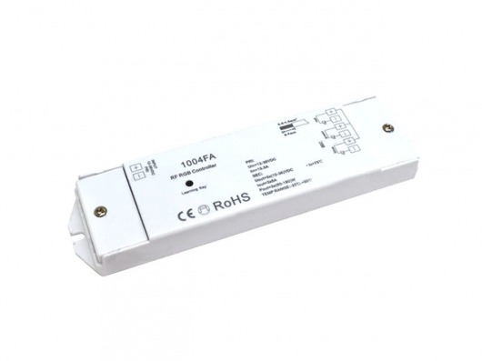 RGB-контроллер SR-1004 FA позволит вам управлять свечением светодиодной ленты. Вы можете подключить к контроллеру до 10 метров ленты с напряжением 12, 24, 36V (допустимая мощность (180/360/540W).