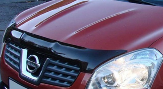 Дефлектор капота для Nissan Qashqai — это щиток из орг.стекла темно-дымчатого цвета, который крепится на переднюю часть капота. Благодаря тому, что дефлектор разработан специально для Nissan Qashqai от 2007 г.в., устанавливается он легко и быстро, при этом сверлить кузов вам не нужно. По форме же накладка полностью повторяет контуры капота. Данная модель прочна и долговечна: она надежно крепится, не боится коррозии, экстремальных температур и серьезных перегрузок.