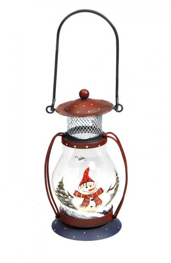 Фонарик прозрачный со снеговиком (7,5 х 7 х 14 см)