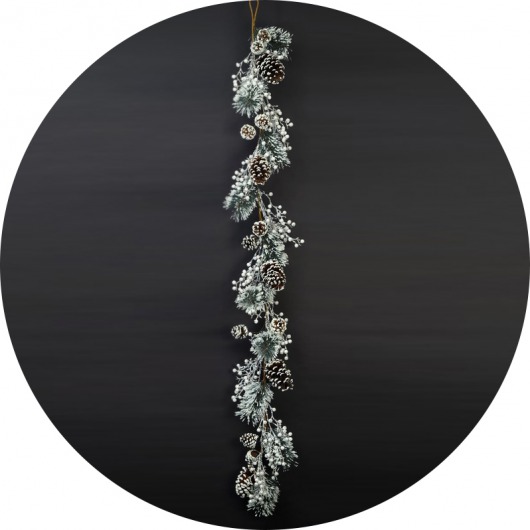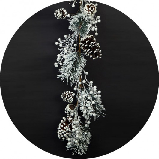 Заснеженная новогодняя гирлянда длиной 1,8 м — прекрасный вариант новогоднего украшения для дома или офиса. Причудливое переплетение серебристых сосновых веточек, ягод и шишек создаст неповторимое новогоднее настроение. Купив сосновую новогоднюю гирлянду, можно оригинально и необычно оформить праздничный интерьер.