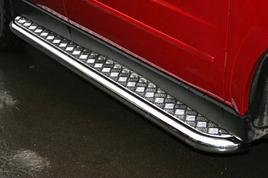Пороги на SsangYong Actyon – это боковые подножки из нержавеющей стали диаметром 60 мм, которые позволяют более комфортно входить и выходить из салона автомобиля. Подножки SsangYong Actyon очень прочные, надежные и долговечные: они не боятся коррозии, сколов и царапин и выдерживают большие нагрузки.