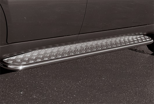 Пороги на SsangYong Rexton – это боковые подножки из нержавеющей стали диаметром 42 мм, которые позволяют более комфортно входить и выходить из салона автомобиля. Подножки SsangYong Rexton очень прочные, надежные и долговечные: они не боятся коррозии, сколов и царапин и выдерживают большие нагрузки.