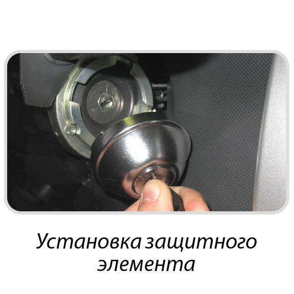 защита корпуса замка зажигания: металлический кожух монтируется поверх штатного замка зажигания. Благодаря этому замок защищается от ударных нагрузок и механического воздействия.