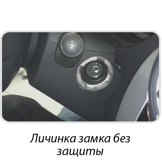 • защита корпуса замка зажигания: металлический кожух монтируется поверх штатного замка зажигания. Благодаря этому замок защищается от ударных нагрузок и механического воздействия.