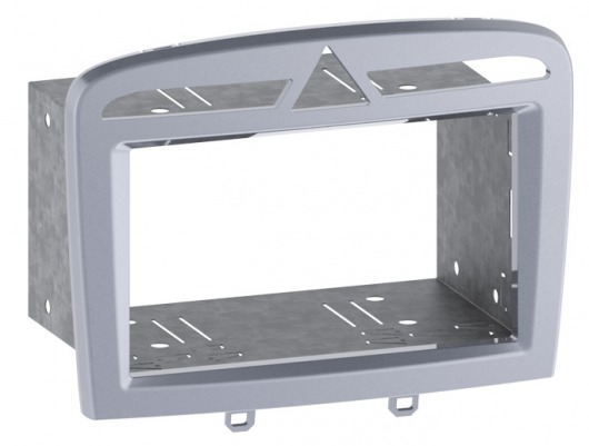 Переходная рамка-салазки Intro RFR-N24 серебристого цвета позволит вам без проблем установить стандартную магнитолу размером 2din в штатное место автомобиля Peugeot  408 (2010 - 2012 г.в.).. Рамка выполнена из высококачественных ABS пластмасс, а по цвету и текстуре она полностью повторяет интерьер вашего авто.