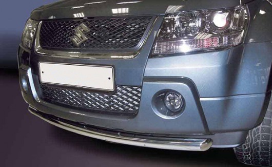 Труба на бампер Suzuki Grand Vitara защищает передний бампер автомобиля от различных механических повреждений при мелких ДТП и неудачных парковках, а также незаменима при езде по бездорожью. А кроме этого, труба на передний бампер Сузуки Гранд Витара смотрится очень стильно и эффектно.