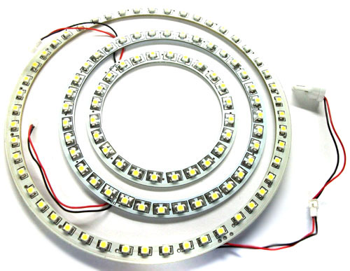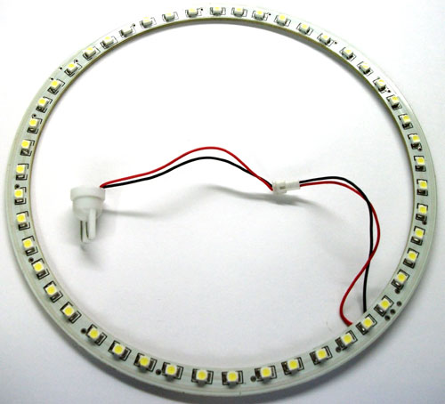 Кольцо светодиодное на базе SMD светодиодов с диаметром в 130 мм устанавливается в габариты и делает ваш автомобиль заметным в любых погодных условиях.