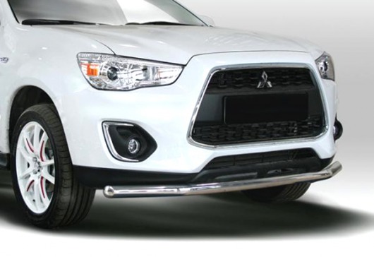 Защита переднего бампера труба предназначена для автомобилей Mitsubishi ASX от 2013 г.в. Вам не придется подгонять защиту под размеры бампера вашего авто. И с монтажом проблем не возникнет: установка защиты переднего бампера производится в штатные отверстия, а значит, необходимость сверлить кузов отпадает.