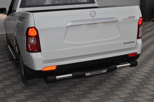 Труба на задний бампер SsangYong Actyon Sport защищает задний бампер автомобиля от различных механических повреждений при столкновениях на дороге и неудачных парковках. А кроме этого, защита заднего бампера для Санг Енг — это дополнительная деталь тюнинга.