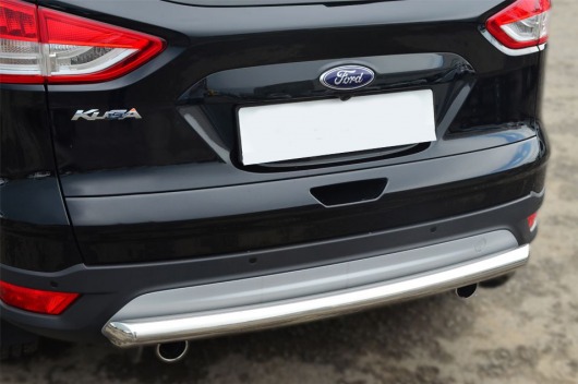 Защита заднего бампера труба предназначена для автомобилей Ford Kuga от 2013 г.в. Вам не придется подгонять защиту под размеры бампера вашего авто. И с монтажом проблем не возникнет: установка защиты заднего бампера производится в штатные отверстия, а значит, необходимость сверлить кузов отпадает.