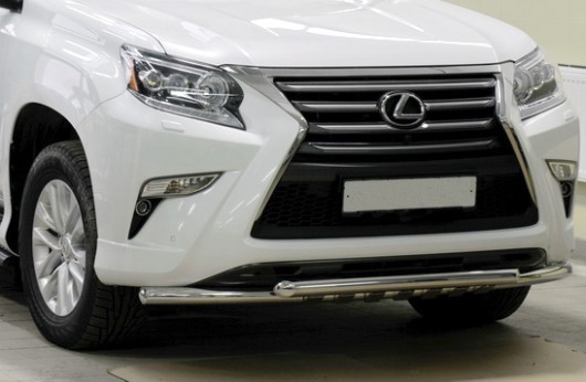 Двойная труба на бампер Lexus GX460 защищает передний бампер автомобиля от различных механических повреждений при мелких ДТП и неудачных парковках, а также незаменима при езде по бездорожью. А кроме этого, труба на передний бампер Лексус GX460 смотрится очень стильно и эффектно.
