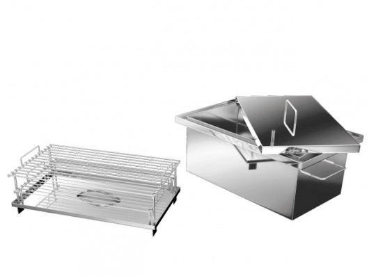 Все элементы коптильни изготовлены из высококачественной пищевой нержавеющей стали (толщина стенок — 1 мм). Такая коптильня из нержавейки не боится коррозии и прослужит вам около 10 лет — и это при том, что вы будете часто ее использовать. Кроме того, такую коптильню легко чистить и мыть после использования.