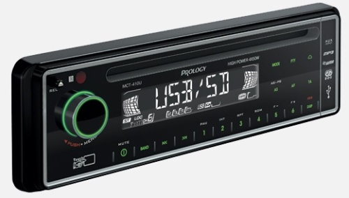 CD/MP3 ресивер Prology MCT-410U имеет встроенный PLL тюнер с системой RDS-EON, благодаря чему это устройство может запоминать до 24 радиостанций. Для того, чтобы подключить дополнительные источники звука, на передней панели существует специальный универсальный аудио-вход. А поскольку мы живем в 21 веке, то в приборе предусмотрены два специальных слота, один для карт SD, а второй для флеш-карт памяти USB.