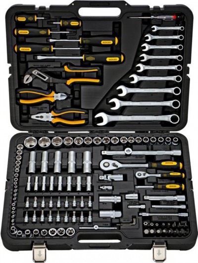 BERGER BG128-1214 — это набор инструментов в чемодане, который включает в себя 128 предметов, начиная от торцевых головок различных размеров и заканчивая автотестером (всю комплектацию вы можете посмотреть в «Характеристиках», во вкладке справа).