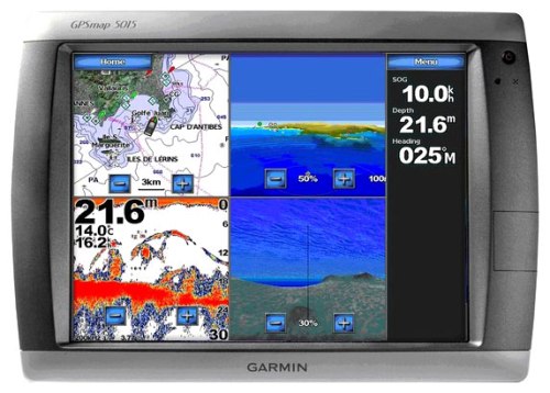 Морской навигатор Garmin GPSMAP 5015+BlueChart является самым большим морским сетевым навигатором. В этом приборе используется такой же сенсорный экран, как и во всех моделях серии 5000. Простая навигация обеспечивается за сет широкого дисплея, спутниковой карты мира и картографии BlueChart® g2 Vision®. Так же, вы можете усовершенствовать систему, добавив эхолот, радар и приемник метеосводок.