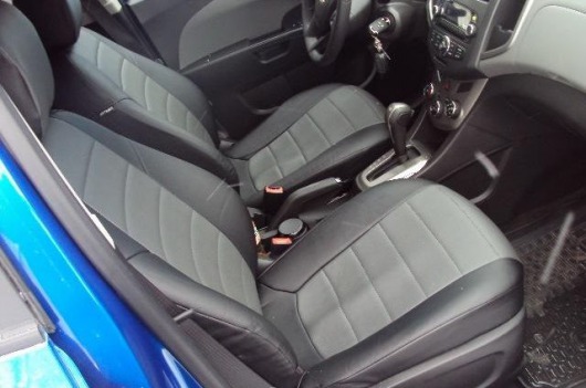 Вопросы и отзывы про Чехлы автомобильные для Chevrolet Aveo II, седан от 12 г.в. (черно-серые, экокожа)