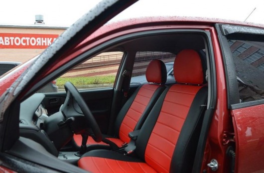 Вопросы и отзывы про Чехлы автомобильные для Mitsubishi Lancer IX, седан/универсал, от 03 г.в. (черно-красные, экокожа)