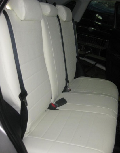 Вопросы и отзывы про Чехлы автомобильные для Mitsubishi Lancer X, седан, 2 л., от 07 г.в. (белые, экокожа)