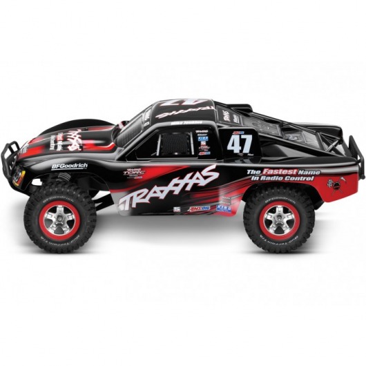Радиоуправляемый внедорожник Traxxas Slash (TQ) - TRX58034 имеет задний привод. Машина на пульте управления оснащена мощным электродвигателем Тraxxas Titan 550 12T, регулятором оборотов Traxxas XL-5 и емким аккумулятором NI-MH 8.4v 3000mAh. Это позволяет авто разогнаться до 50 км/ч. Кроме того, дизайн кузова радиоуправляемого грузовика в точности повторяет оформление реальных автомобилей, участвующих в гонках.
