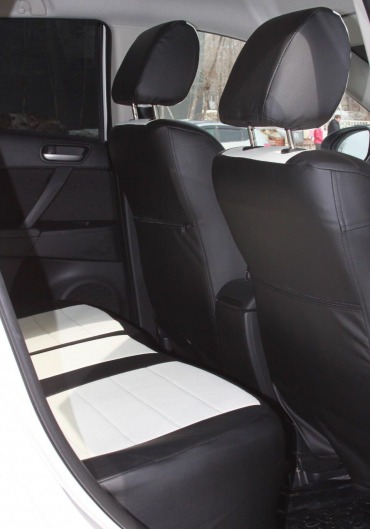Вопросы и отзывы про Чехлы автомобильные для Mazda 3, седан/хэтчбек 03-09 г.в. (черно-белые, экокожа)