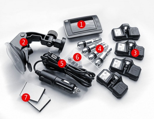 В каждое колесо устанавливается (крепится к клапану) блок датчиков контроля состояния колеса с встроенным передатчиком и элементом питания. Блоки очень легкие, что позволяет вам без проблем производить балансировку колес после сборки. Питание происходит от простого прикуривателя. Больше никаких специальных настроек или подключений не требуется.