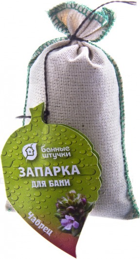 Банная запарка "Чабрец" — это сбор на основе чабреца в льняном мешочке. Чабрец обладает антисептическимим свойствами, благотворно влияет на нервную систему, используется для лечения нефритов. После использования в бане настоя с чабрецом облегчаются боли в почках.
