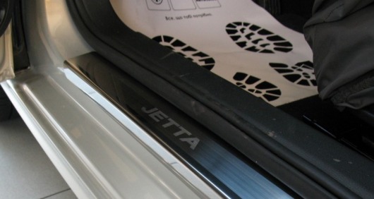 Внутренняя накладка на порог Volkswagen Jetta  — это аксессуар автомобильного тюнинга, который защищает внутренний порог от механических повреждений при посадке и высадке из машины. Декоративные накладки с рисунком на внутренние пороги предназначены для автомобилей Volkswagen Jetta от 2005 г.в.