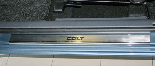 Накладки на пороги дверей Mitsubishi COLT не только обеспечивают защиту верхней и боковой поверхности внутреннего порога, но и отлично вписываются в интерьер автомобиля, подчеркивая его стиль и индивидуальность. C монтажом проблем не возникнет: установка накладок на внутренний порог для Mitsubishi COLT производится на штатные места с помощью скотча 3M.