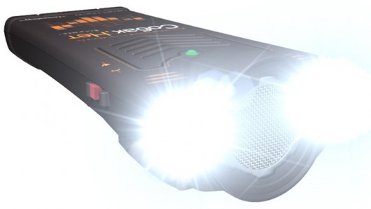 В режим сверхъяркого фонарика прибор переводится при помощи переключателя на правой боковой стороне корпуса. Два сверхъярких светодиода дают достаточно света, чтобы вы могли, к примеру, уверенно найти дорогу в темноте или открыть замок гаража.