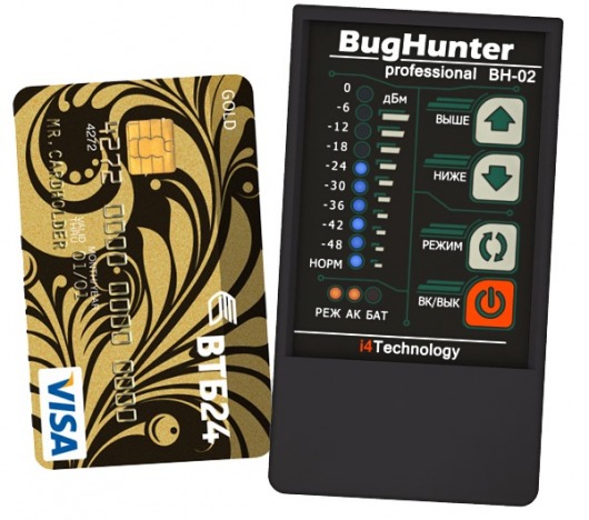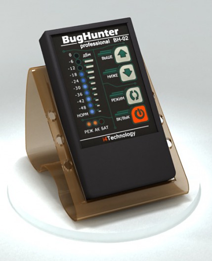 Обнаружитель шпионского оборудования профессионального класса BugHunter Professional BH-02 эффективно обнаруживает как аналоговые, так и цифровые жучки (любые радиомикрофоны, беспроводные камеры, мобильные телефоны и другие устройства). Детектор жучков работает в широком диапазоне частот — от 50 до 3000 МГц и имеет стабильно высокую чувствительность. Встроенный GSM-фильтр отсеивает "ложные" сигналы от сотовых станций, а расширенный динамический диапазон позволяет одинако обнаруживать как сильные, так и слабые радиосигналы. Прибор может работать в скрытом режиме при использовании наушников.