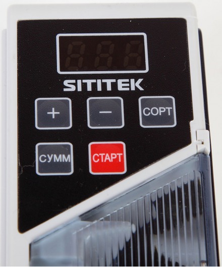 Работает счетчик денег Sititek V40-M professional как от сети 220 В, так и автономно от батареек, что выгодно отличает его от подобных устройств. Ресурса батареек хватит примерно на 20 часов работы или подсчета 120000 купюр.