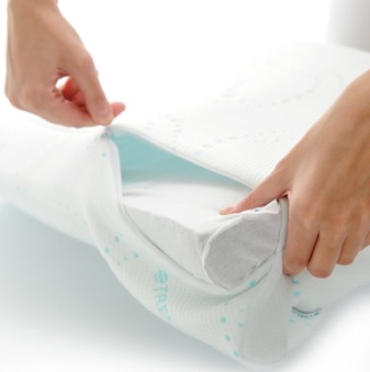 Для лучшего воздухообмена поверхность ортопедической подушки перфорированная. Наволочка сделана из трехслойной хлопковой ткани, которая является абсолютно гипоаллергенной и подойдет для использования даже астматикам и аллергикам.