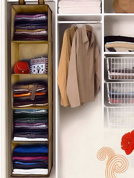 Складная полка для хранения одежды очень удобна в использовании. Ее можно взять с собой в путешествие, на дачу. Полка состоит из пяти отделений, чтобы вы могли свободно и аккуратно хранить свои вещи.