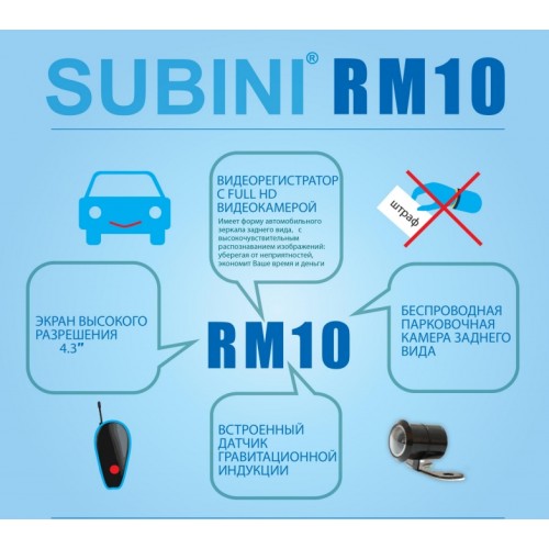Основная особенность Subini RM10 - это его выносная камера заднего вида с разметочной сеткой (помогает при парковке). Это беспроводная камера для установки на заднее стекло или бампер. Передача видеосигнала без проводов существенно упрощает процесс установки камеры на вашем автомобиле. Питание на нее подается через специальный блок, подключенный к фонарям заднего хода. Тем самым, когда вы включаете заднюю передачу - на дисплее вашего видеорегистратора Subini RM10 появляется видеоизображение с парковочной камеры и вы легко и удобно можете ей воспользоваться.
