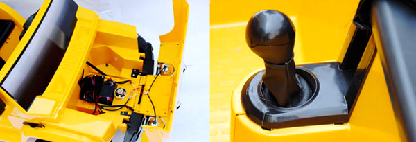 Во время движения путь будет подсвечиваться фарами, а если на пути попадется зазевавшийся пешеход, водитель может подать ему звуковой сигнал. Кроме того, в автомобиле есть самая настоящая коробка передач и багажное отделение, в котором можно перевозить игрушки и прочие полезные вещи.