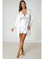 - Шикарный халат средней длины с прозрачными кружевными вставками в виде нежных цветов в зоне плеч и на манжете рукава.