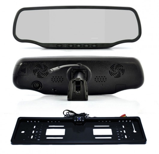 • Помимо парктроника с 4-мя датчиками, в комплект поставки входит влагозащищенная камера заднего вида, которая встраивается в рамку для номера. Благодаря специальной матрице, камера способна ловить изображение в темноте на расстоянии до 5 метров. Учитывая угол обзора в 170°, этого более чем достаточно для безопасной парковки. В любое время суток.