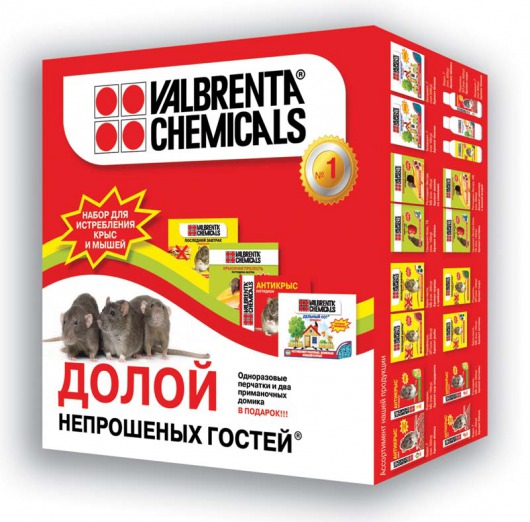 Набор №1 VALBRENTA CHEMICALS "Долой непрошенных гостей" предназначен для комплексного истребления всех видов крыс и мышей в любых помещениях и на прилегающих к ним территориях. В наборе подобрано оптимальное сочетание нескольких видов приманок с различными возможностями использования и различными ароматами, которые так привлекают грызунов.