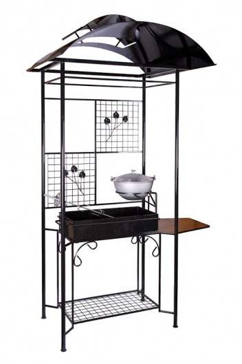 • Металлический навес с вытяжкой защищает мангал от осадков, так что никакой дождь не помешает вам приготовить вкуснейший шашлык для родных и друзей.
