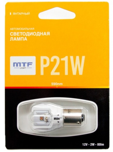 Светодиодная лампа MTF Light P21W с уникальной конструкцией линзы отлично повторяет распространение света штатной лампы. Цвет свечения автолампы: желтый.