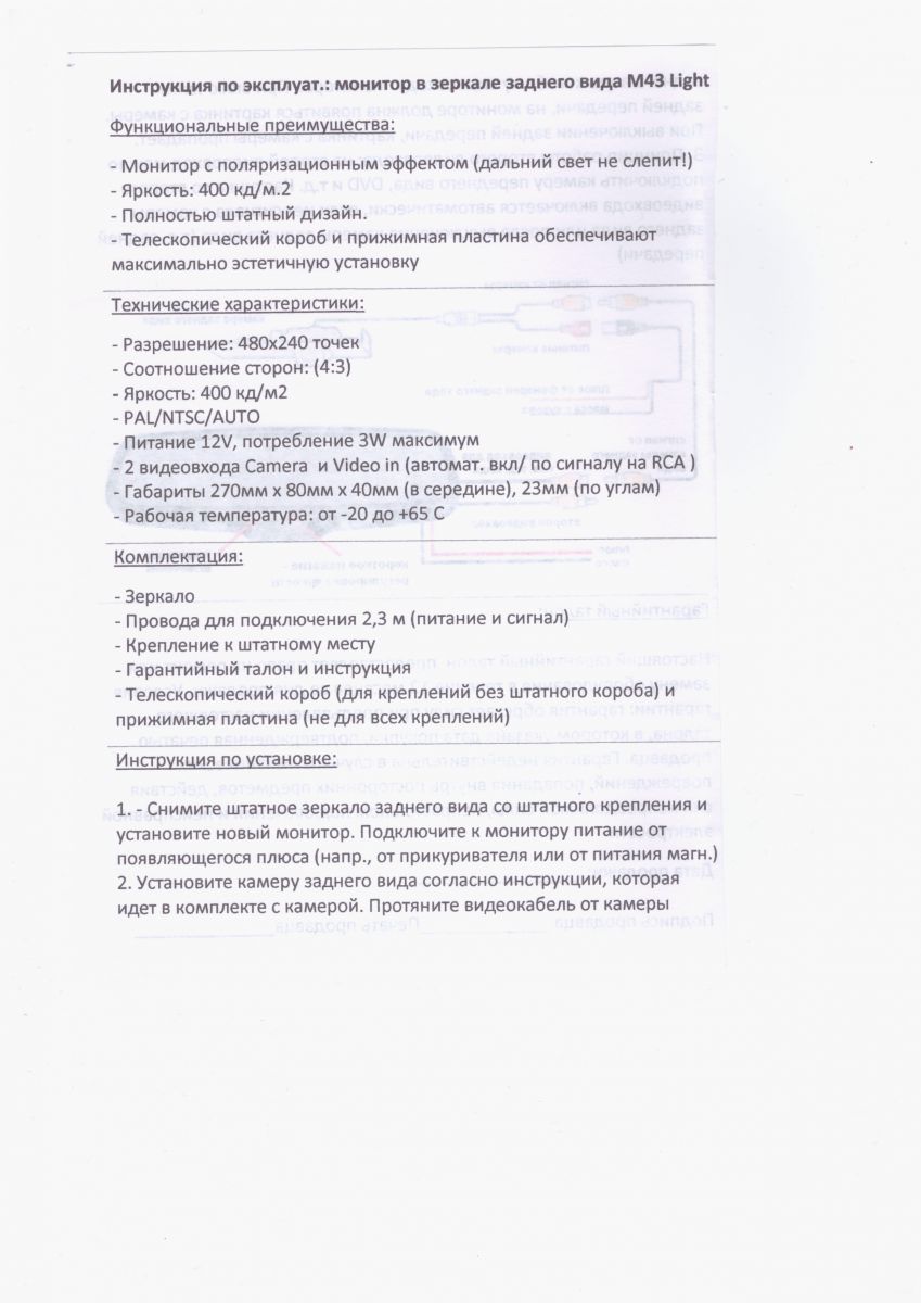 Вопросы и отзывы про Зеркало с монитором 4,3" Redpower M43 Light с креплением №5