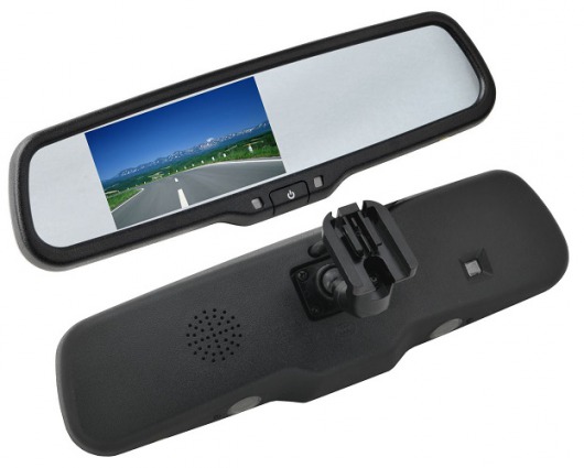 Зеркало произведено из высококачественного ABS пластика. Отражающая поверхность зеркала покрыта антибликом, благодаря которому полностью исключаются солнечные блики. Так снижается утомляемость глаз и пользование устройством становится еще более удобным. К зеркалу можно подключить камеру заднего вида и камеру переднего вида одновременно. Изображение будет демонстрироваться на встроенном, контрастном ЖК-дисплее с диагональю 4.3 дюйма (16:9). Яркость дисплея регулируется: вы сможете изменить яркость изображения в зависимости от освещения и времени суток.