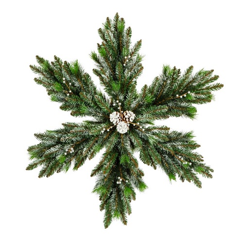 Материал, из которого сделана новогодняя снежинка, не горит. Поэтому в новогоднюю ночь вы смело можете жечь рядом с ней бенгальские огни или свечи. Кроме того, материал долговечен, не осыпается и не выцветает: такая искусственная сосновая гирлянда будет радовать вас не один год.