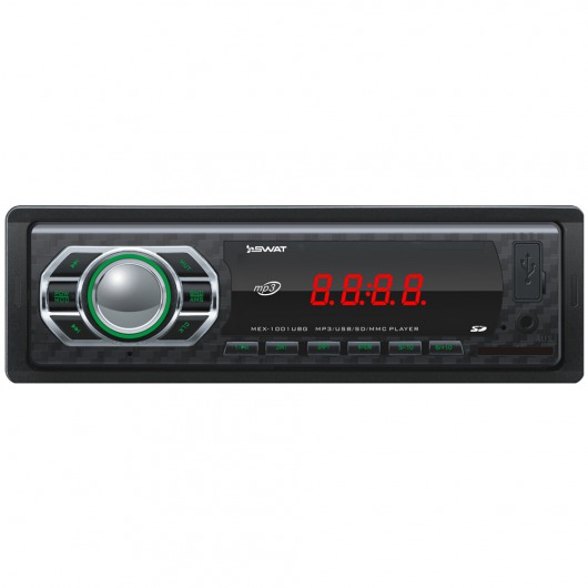Автомобильная магнитола 1din Swat MEX-1001UBG – недорогое, но функциональное утройство. У MEX-1001UBG есть широкий набор возможностей, которые позволяют выжать из устройства по максимуму. Ресивер способен выдавать звук на 2 колонки по 35 ватт. Есть возможность сохранения до 18 радиостанций на цифровом радио-тюнере. Кроме того, реализована возможность прослушивания аудиозаписей через карту памяти.