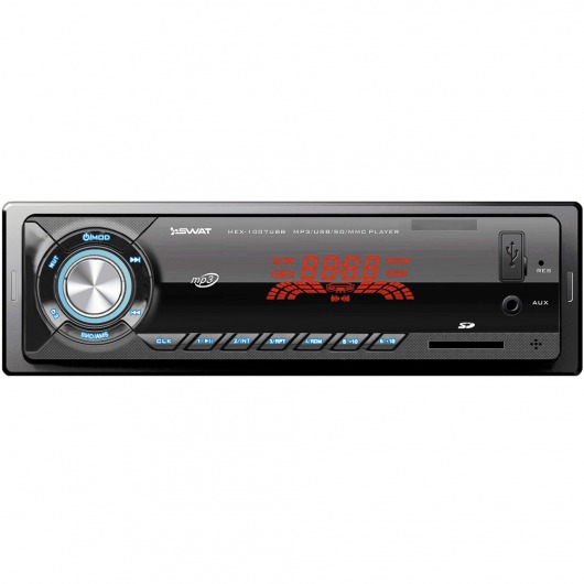 Автомобильная магнитола 1din Swat MEX-1007UBB – недорогое, но функциональное утройство. У MEX-1007UBB есть широкий набор мультимедийных технологий, которые позволяют выжать из устройства по максимуму. Ресивер способен выдавать звук на 4 колонки по 50 ватт. Есть возможность сохранения до 18 радиостанций на цифровом радио-тюнере. Кроме того, реализована возможность прослушивания аудиозаписей через карту памяти.