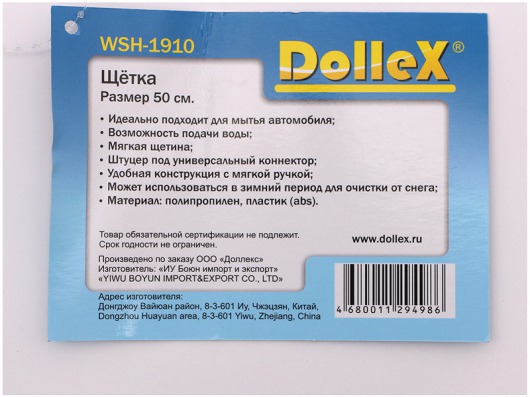Щетка для мытья Dollex WSH-1910 оснащена специальным клапаном для подсоединения шланга с водой. Щетина изготовлена из новейших материалов по специальной технологии, поэтому она впитывает и удерживает большое количество воды. Всё это в совокупности не только значительно облегчает вам мытье своего автомобиля, но и дает отличный эффект. С такой щеткой лакокрасочное покрытие вашего автомобиля сохранится надолго!