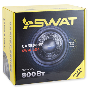Сабвуферный динамик SWAT SW R12D4 предназначен для использования в фазоинверторных и закрытых корпусах. Прочная  корзина из штампованной стали надежно защищает от повреждений. Особый жесткий диффузор, изготовленный из непрессованной целлюлозы, эффективный пылезащитный колпачок и звуковая катушка обеспечивают как механическую прочность сабвуфера в целом, так и стабильность его характеристик.