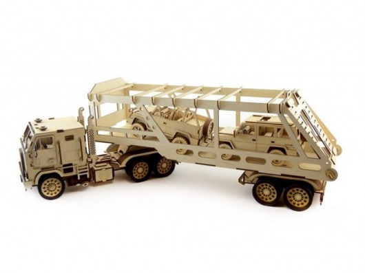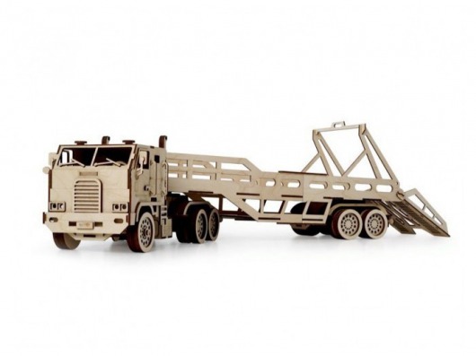 Кроме того, деревянный автовоз в сборе прекрасно ездит по любой поверхности. А еще вы можете открывать дверцы кабины, снимать прицеп и опускать погрузочный мостик. Сам же процесс сборки не только отлично развивают мелкую моторику и сенсорику, но и прекрасно способствует развитию глазомера. Также немаловажно, что такая игра тренирует в вашем ребенке терпеливость и усидчивость.