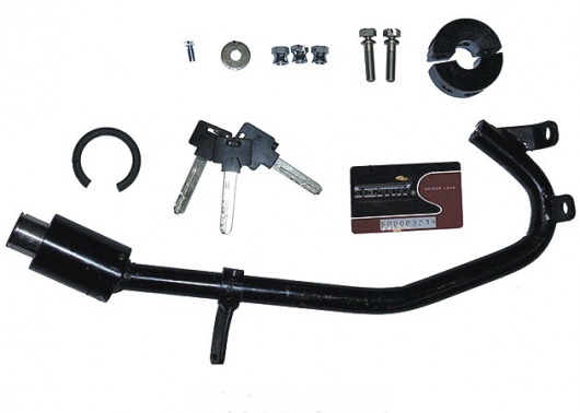 Рулевой блокиратор Sentry Spider очень удобен в применении. Достаточно вставить ключ в личинку и повернуть — и ригель запорного механизма надежно блокирует рулевой вал. При этом личинка замка располагается в доступном месте, а вам не нужен никакой штырь!